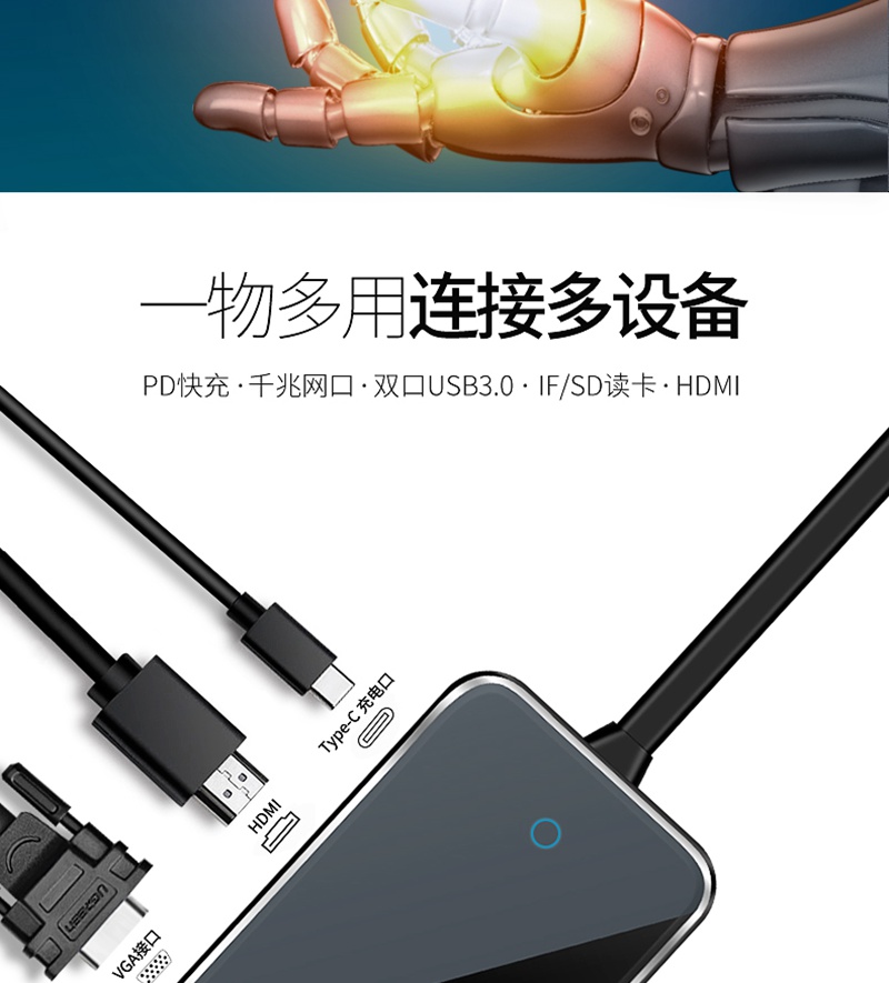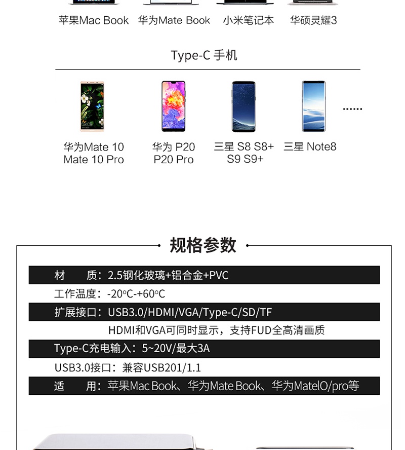 卡古驰typec扩展坞苹果笔记本电脑usb接口拓展器macbookpro转接头雷电3华为手机hdmi分线配件外置网线转换器