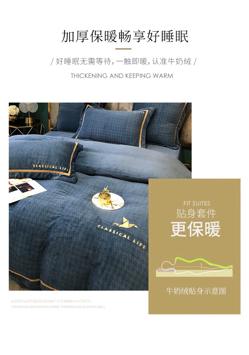 进口高端牛奶绒床上四件套加厚保暖被套双面珊瑚绒冬季千鸟格床品
