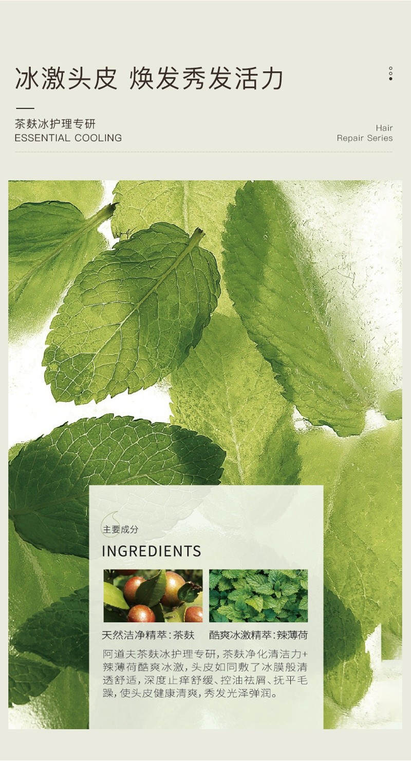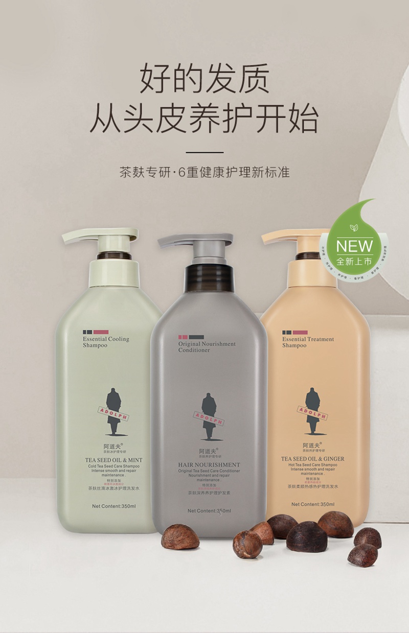 阿道夫茶麸冰护理热护理养护理洗发水护发素套装350ml
