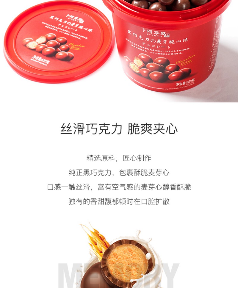 桶装怀旧黑巧克力夹心麦芽脆心球零食朱古力糖果送儿童