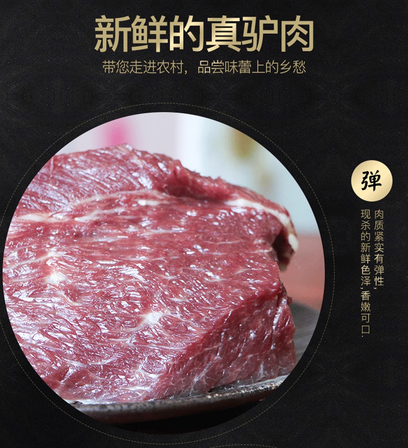 驴肉新鲜正宗生鲜驴肉新鲜散养真空 1000g河北特产生带皮驴肉火烧